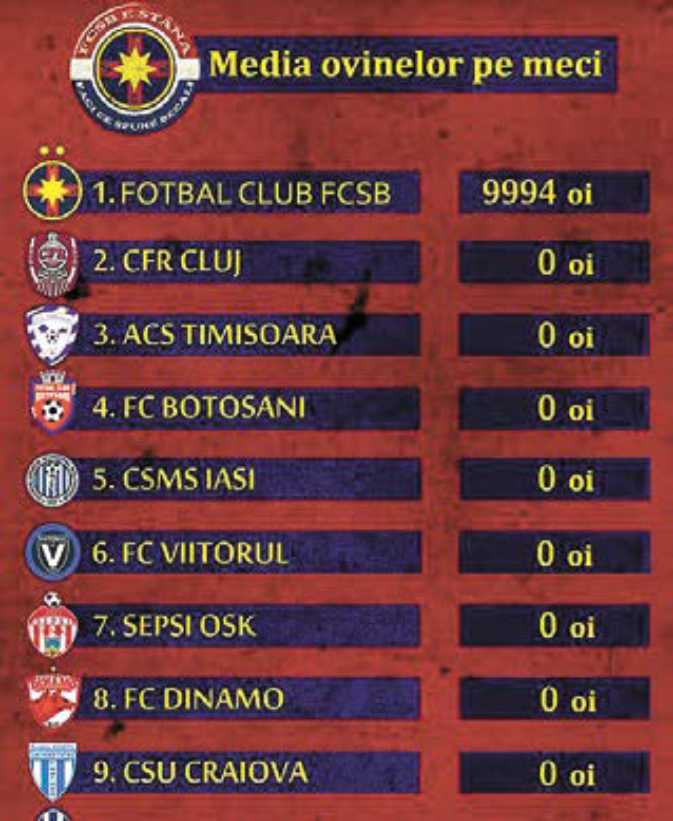 » Cumpăr oi pentru următoarele meciuri de acasă. Relaţii la telefon 0749 –323272 (0749 – fcfcsb). Rog seriozitate, miştocarii să se abţină.